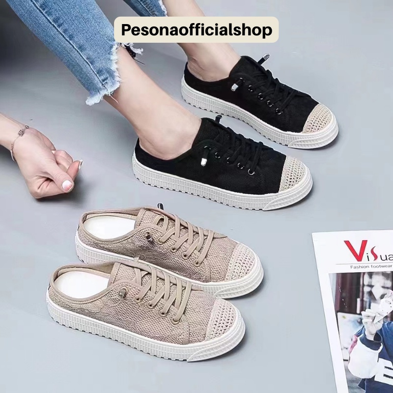 COD POS Y625 Sepatu Sneakers Selop Wanita Import Kanvas