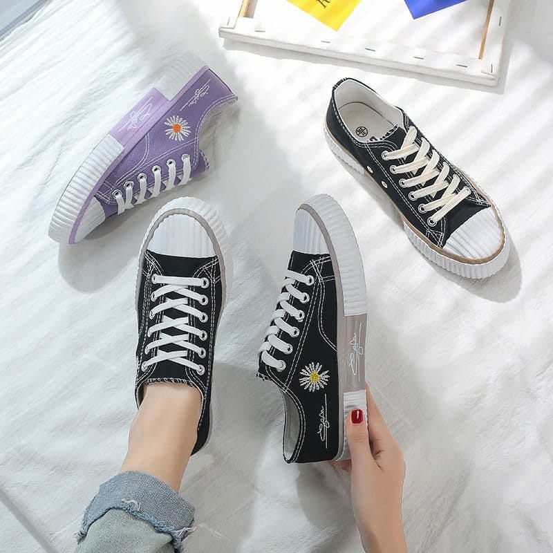 Sepatu Wanita Sneakers Tali Kanvas Model Retro Korea MH-01