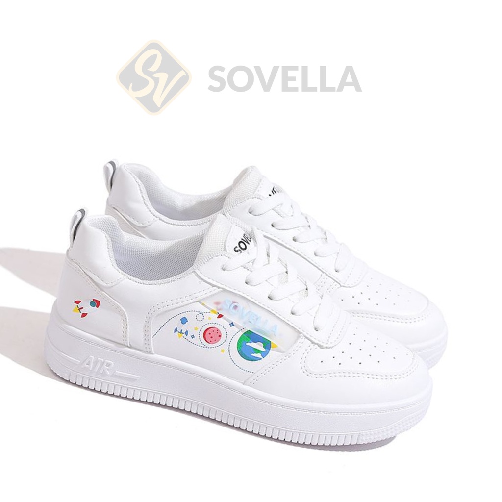 SOVELLA Laura Sepatu Sneakers Olahraga Simple Putih Polos Wanita Import
