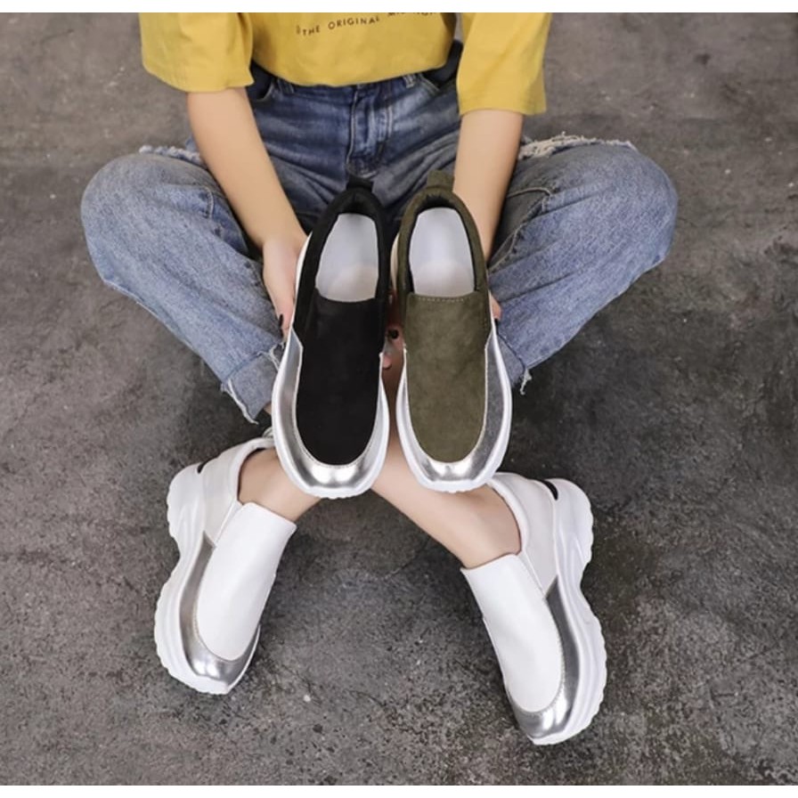 SEPATU FASHION WANITA SNEAKERS CASUAL LEATHER METALIC